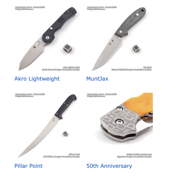 Here’s an overview of all the production samples that Spyderco unveiled at the 2025 Amsterdam Meet. At least the ones I could photograph and publish. I also added the video in each post per production sample. And I updated the Prototypes page with this overview.
